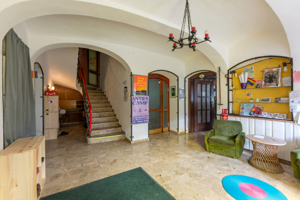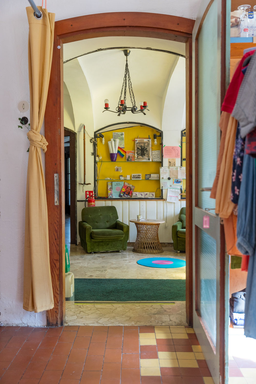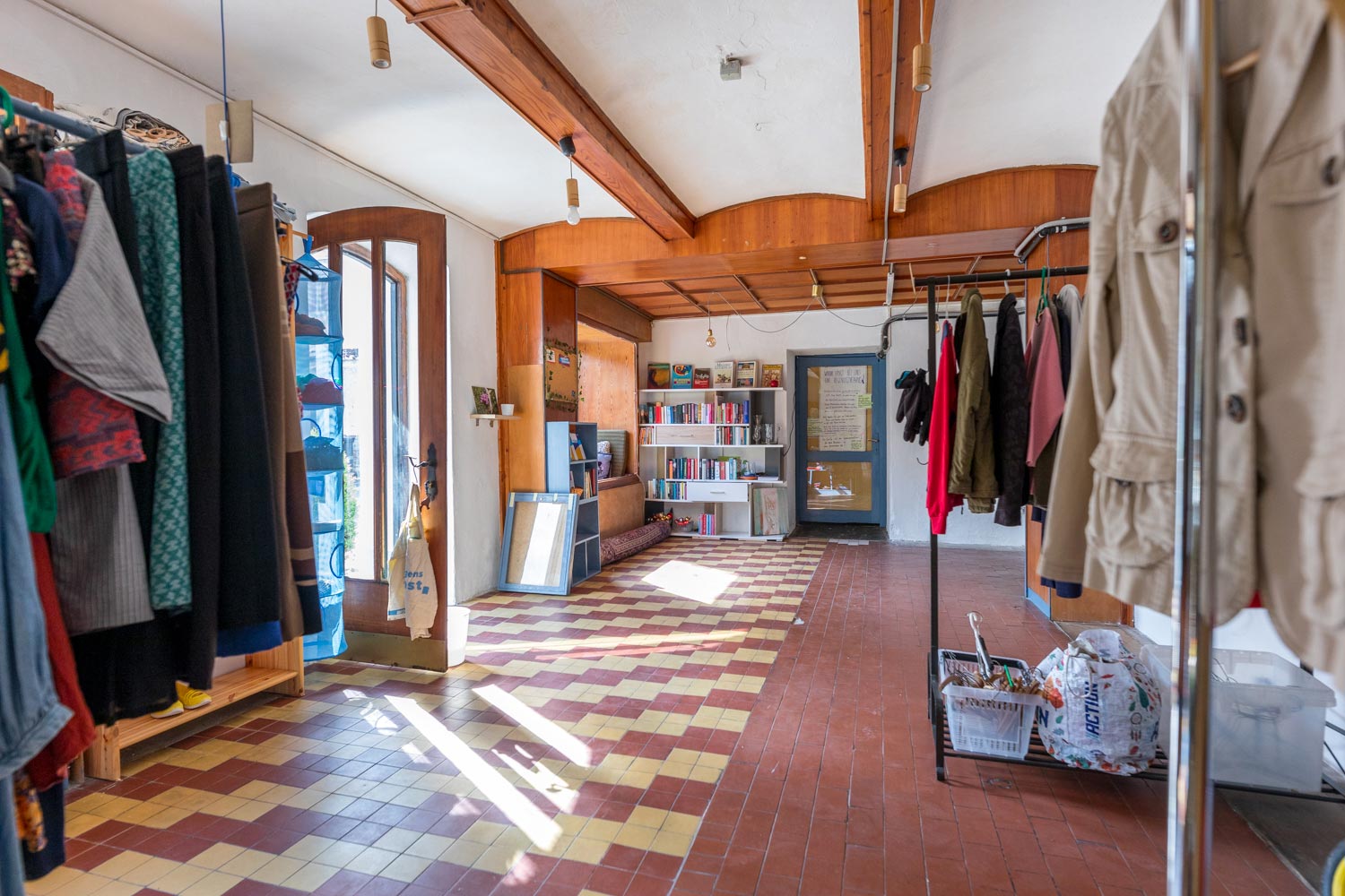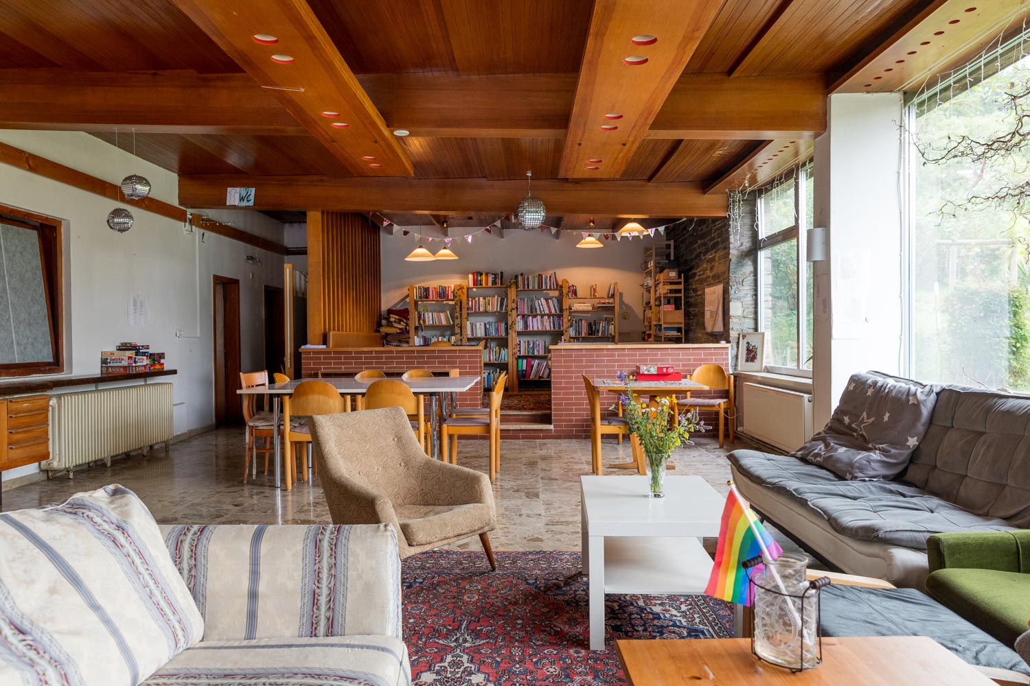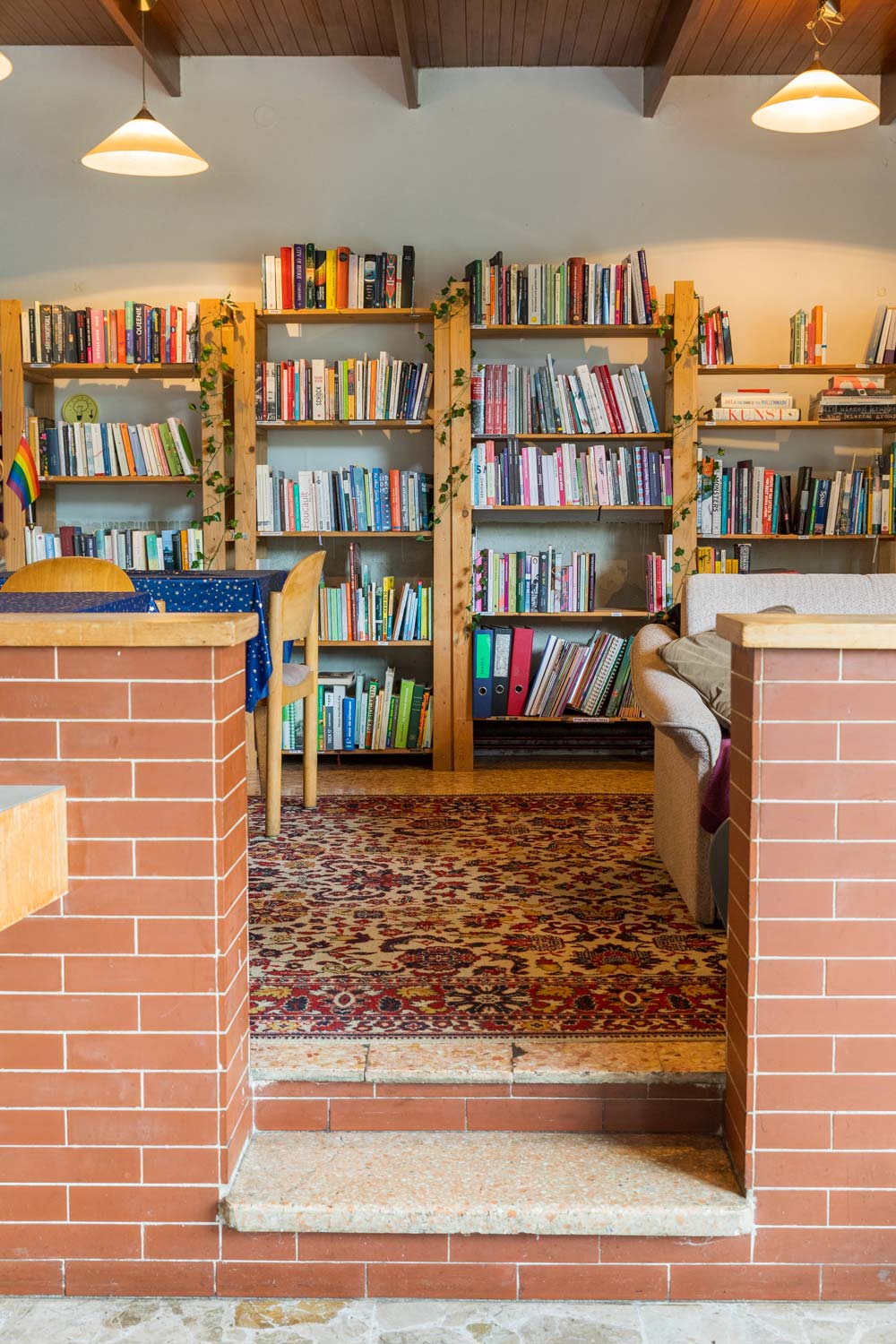 Gemeinschaftsräume ÜbersichtSaalb-Room (Bewegungsraum)FoyerBar und StüberlWintergartenBibliothekTerrasseKüchefrei:räumchenÜbersicht RaumpläneX Erdgeschoß 1. Obergeschoß 2. Obergeschoß Saal b-Room (Bewegungsraum) Foyer Bar und Stüberl Wintergarten Bibliothek Terrasse Küche frei:räumchen Saal NutzungKonzerte, Filmscreenings, Parties, Feiern, Theater, Ausstellung, Seminargruppen, TanzAusstattungStühle, Bühne, Bühnenlicht, PV-Anlage, Backstageraum, Leinwand, Zentralheizung, verdunkelbare FensterBarrierenRaum ist über Rampe oder Lift barrierefrei zugänglich, barrierefreies Bad und WC im gleichen Stockwerk (Zimmer 4) b-Room (Bewegungsraum) Nutzungfür Sport, Bewegung, Körperarbeit aller Art, Seminargruppen, TanzAusstattungKork Schwingboden, Zentralheizung, Matten, Decken, Sitzpölster, Hanteln, Gummibänder, Blackroll, Massageliege, Boxsack, BoxhandschuheBarrierenRaum ist über Rampe oder Lift barrierefrei zugänglich, barrierefreies Bad und WC im gleichen Stockwerk (Zimmer 4) Foyer NutzungEingangsbereich, Garderobe, Go-Mobil-Tickets, Lost-and-FoundAusstattung2 Sofasessel und Tisch, Erstehilfekasten, Feuerlöscher, Lost-and-Found-RegalBarrierenRaum ist über Rampe barrierefrei zugänglich, Zugang zum Lift Bar und Stüberl NutzungAufenthaltsräume für Essen, Spielen, Kaffe-/Teetrinken, Puzzlen uvm.Ausstattung2 runde Tische mit runden Bänken, 2 eckige Tische im Stüberl, ZentralheizungBarrierenRaum ist über Rampe barrierefrei zugänglich, kein barrierefreies Bad im Stockwerk Wintergarten NutzungEssen, Spielen, Filmscreenings, Aufenthaltsraum, Wohnzimmer, SeminargruppenAusstattungTische, Stühle, Sofas, Flipchart, Pinwände, Beamer, ZentralheizungBarrierenRaum ist über Rampe barrierefrei zugänglich, kein barrierefreies Bad im Stockwerk Bibliothek NutzungBücher vor Ort lesenAusstattungBücher, Sitzgelegenheiten, Tische, Sofa, ZentralheizungBarrierenzweistufige Treppe vom Wintergarten zum Bibliotheksbereich, kein barrierefreies Bad und WC im Stockwerk Terrasse NutzungEssen, Lesen, RelaxenAusstattungTische, SofaBarrierenStufe Küche NutzungKochen, Lagermöglichkeit für LebensmittelAusstattungGastroküche, Kühlschränke, SpülmaschineBarrierenüber Rampe barrierefrei zugänglich, nicht unterfahrbar frei:räumchen NutzungKostnix-Bereich (Kleider/Dinge, die du nicht mehr brauchst bringen und nehmen, ohne Bezahlung), Ausstellungen AusstattungSitzgelegenheit mit Tisch, keine ZentralheizungBarrierenvon außen über Rampe zugänglich, vom Foyer nur über zweistufige Treppe zugänglich, kein barrierefreies Bad und WC im Stockwerk