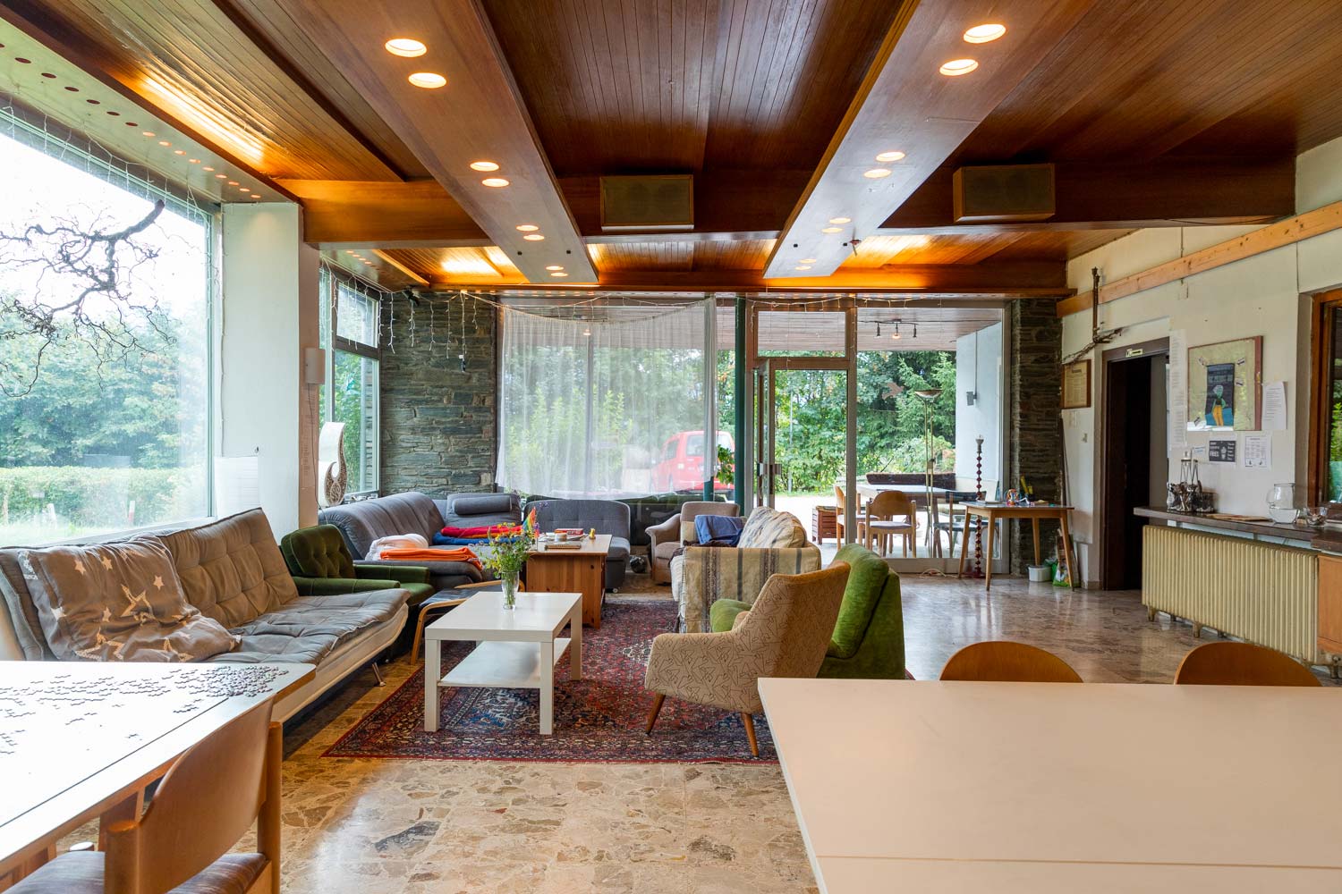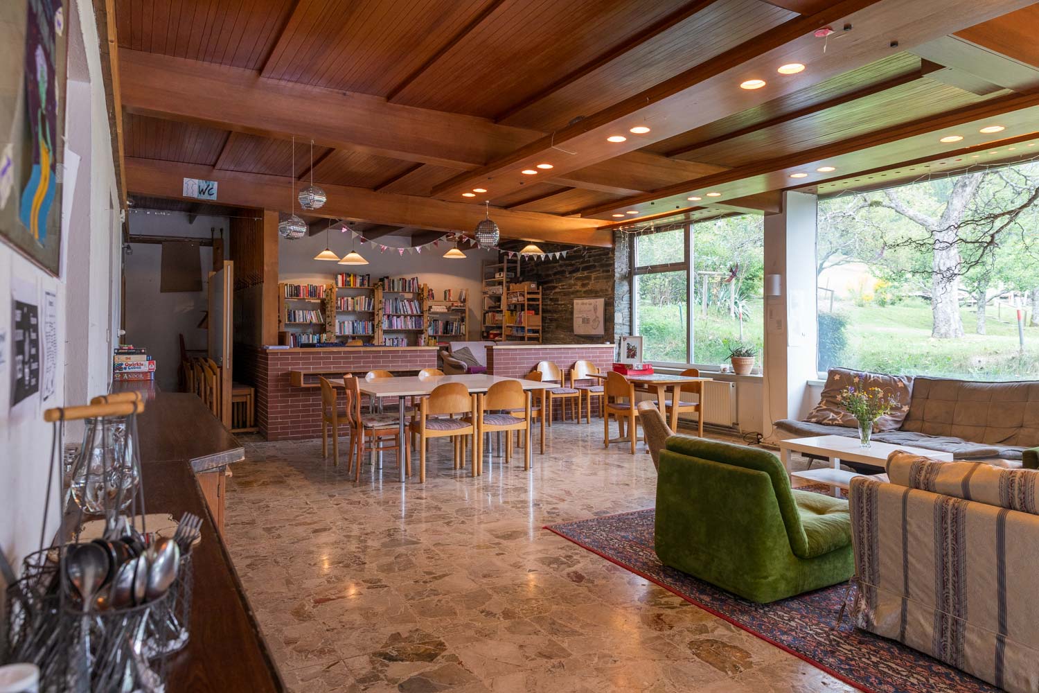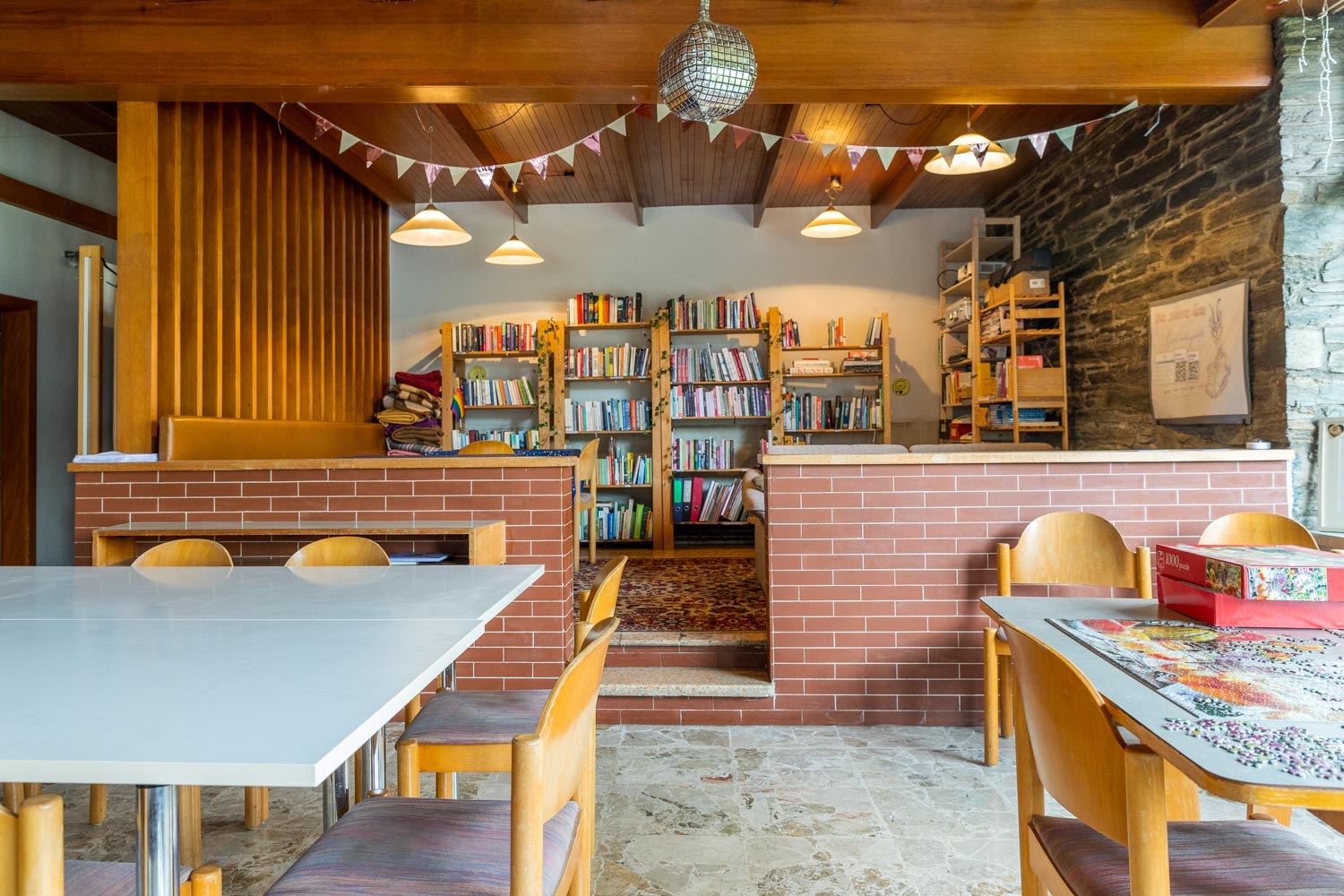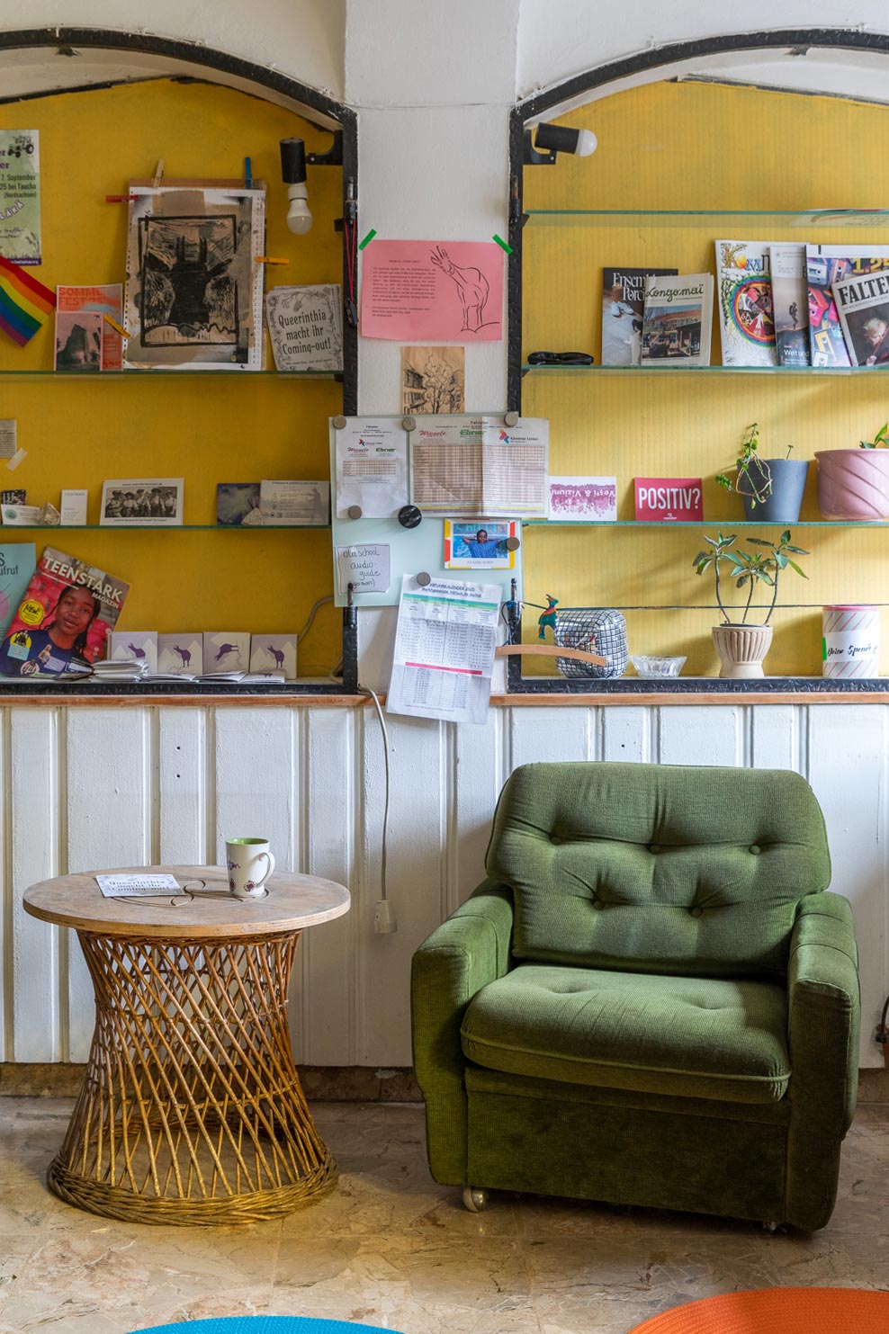Gemeinschaftsräume ÜbersichtSaalb-Room (Bewegungsraum)FoyerBar und StüberlWintergartenBibliothekTerrasseKüchefrei:räumchenÜbersicht RaumpläneX Erdgeschoß 1. Obergeschoß 2. Obergeschoß Saal b-Room (Bewegungsraum) Foyer Bar und Stüberl Wintergarten Bibliothek Terrasse Küche frei:räumchen Saal NutzungKonzerte, Filmscreenings, Parties, Feiern, Theater, Ausstellung, Seminargruppen, TanzAusstattungStühle, Bühne, Bühnenlicht, PV-Anlage, Backstageraum, Leinwand, Zentralheizung, verdunkelbare FensterBarrierenRaum ist über Rampe oder Lift barrierefrei zugänglich, barrierefreies Bad und WC im gleichen Stockwerk (Zimmer 4) b-Room (Bewegungsraum) Nutzungfür Sport, Bewegung, Körperarbeit aller Art, Seminargruppen, TanzAusstattungKork Schwingboden, Zentralheizung, Matten, Decken, Sitzpölster, Hanteln, Gummibänder, Blackroll, Massageliege, Boxsack, BoxhandschuheBarrierenRaum ist über Rampe oder Lift barrierefrei zugänglich, barrierefreies Bad und WC im gleichen Stockwerk (Zimmer 4) Foyer NutzungEingangsbereich, Garderobe, Go-Mobil-Tickets, Lost-and-FoundAusstattung2 Sofasessel und Tisch, Erstehilfekasten, Feuerlöscher, Lost-and-Found-RegalBarrierenRaum ist über Rampe barrierefrei zugänglich, Zugang zum Lift Bar und Stüberl NutzungAufenthaltsräume für Essen, Spielen, Kaffe-/Teetrinken, Puzzlen uvm.Ausstattung2 runde Tische mit runden Bänken, 2 eckige Tische im Stüberl, ZentralheizungBarrierenRaum ist über Rampe barrierefrei zugänglich, kein barrierefreies Bad im Stockwerk Wintergarten NutzungEssen, Spielen, Filmscreenings, Aufenthaltsraum, Wohnzimmer, SeminargruppenAusstattungTische, Stühle, Sofas, Flipchart, Pinwände, Beamer, ZentralheizungBarrierenRaum ist über Rampe barrierefrei zugänglich, kein barrierefreies Bad im Stockwerk Bibliothek NutzungBücher vor Ort lesenAusstattungBücher, Sitzgelegenheiten, Tische, Sofa, ZentralheizungBarrierenzweistufige Treppe vom Wintergarten zum Bibliotheksbereich, kein barrierefreies Bad und WC im Stockwerk Terrasse NutzungEssen, Lesen, RelaxenAusstattungTische, SofaBarrierenStufe Küche NutzungKochen, Lagermöglichkeit für LebensmittelAusstattungGastroküche, Kühlschränke, SpülmaschineBarrierenüber Rampe barrierefrei zugänglich, nicht unterfahrbar frei:räumchen NutzungKostnix-Bereich (Kleider/Dinge, die du nicht mehr brauchst bringen und nehmen, ohne Bezahlung), Ausstellungen AusstattungSitzgelegenheit mit Tisch, keine ZentralheizungBarrierenvon außen über Rampe zugänglich, vom Foyer nur über zweistufige Treppe zugänglich, kein barrierefreies Bad und WC im Stockwerk