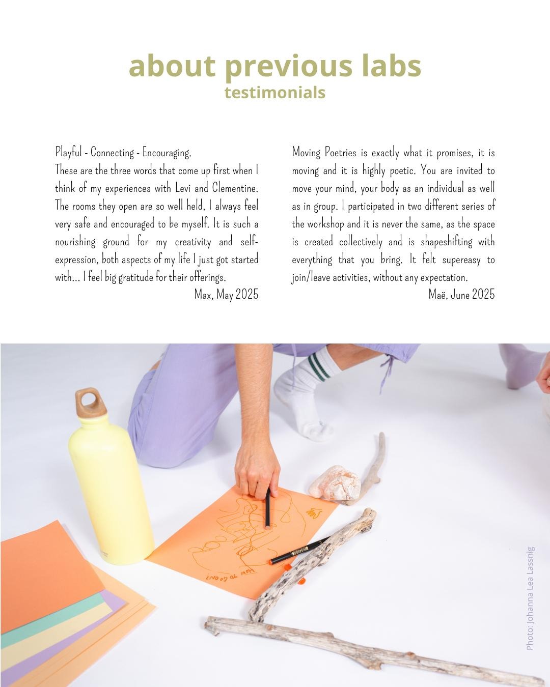 Clémentine (she/ her) teaches holistic dance and contemporary dance. As a poem writer, she explores the human qualities of perception, sensibility and sensoriality. Her poetic work emphasizes the threads of receptivity, response and action that connect the inner world to the human and natural outer world. She brings dance and poetry together in a research for expression. Beyond Moving Poetry, Clémentine offers 1:1 session to support people in their process of self-discovery and growth.