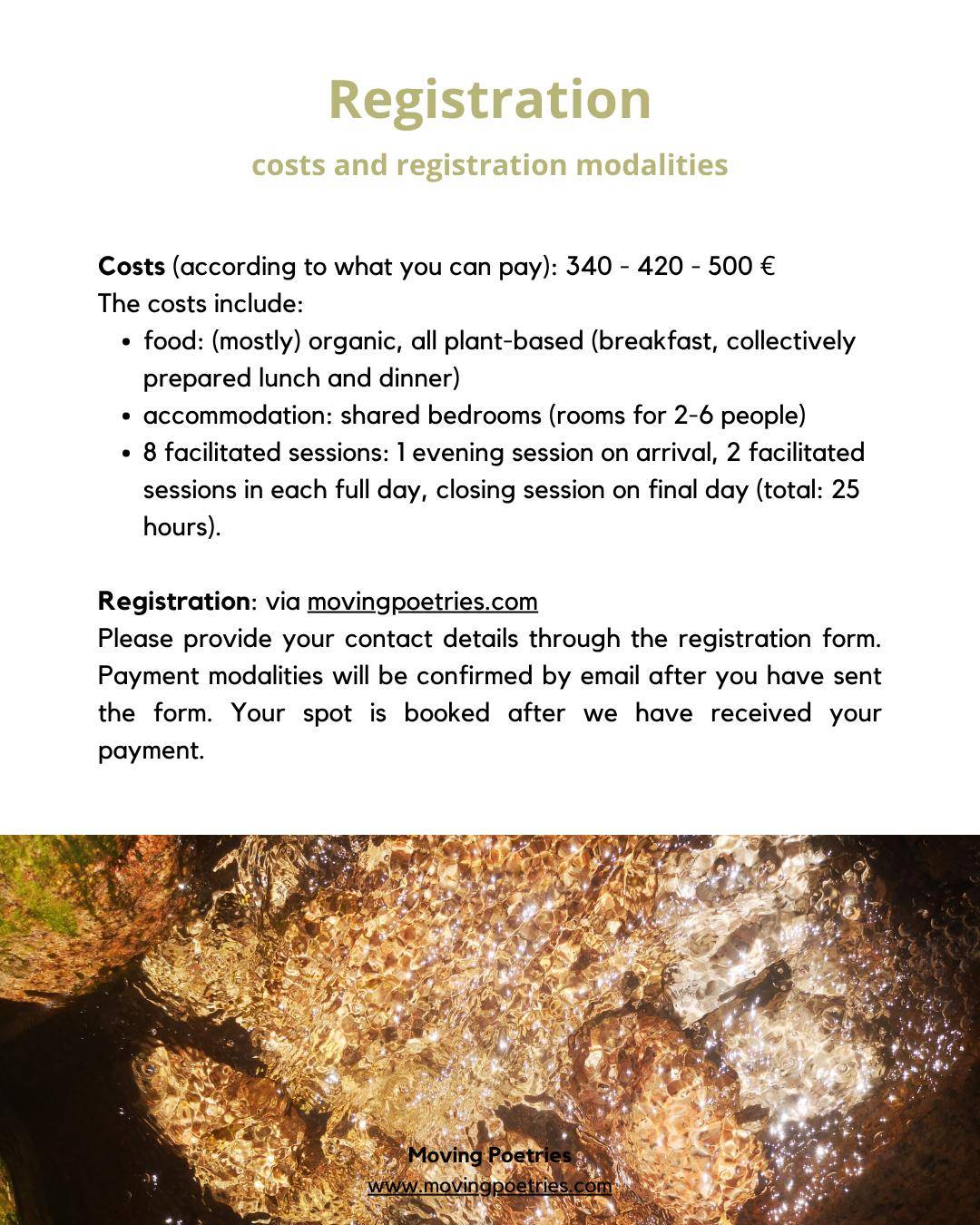 Costs: 340 – 420 – 500 € (including organic food, accommodation, and lab)